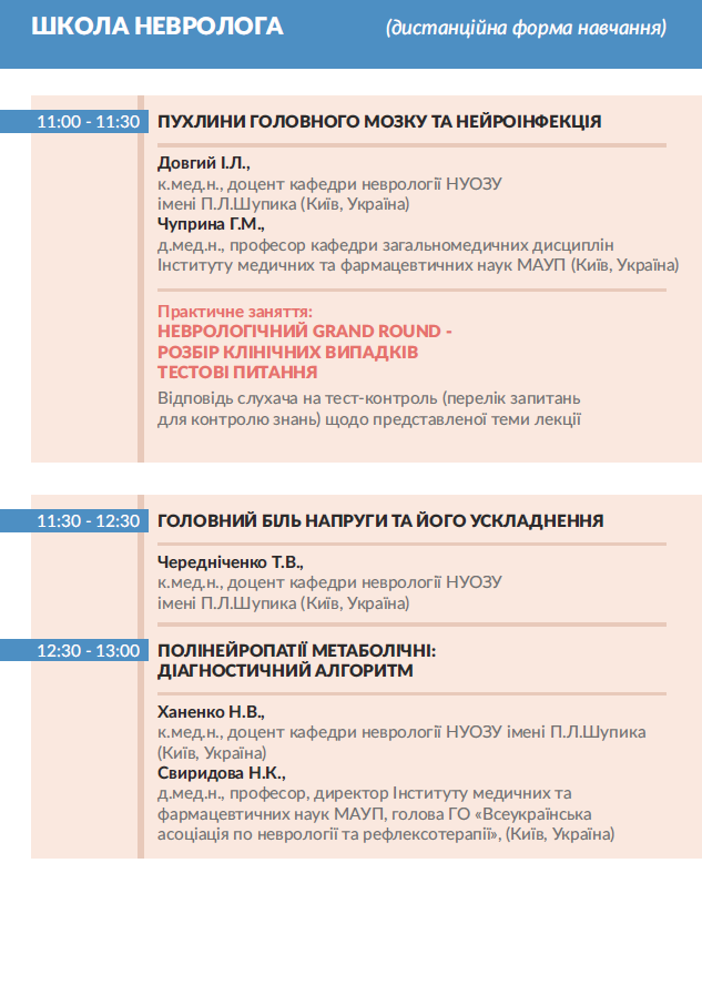 Пухлини головного та спинного мозку, хронічна нейроінфекція, полінейропатії метаболічні; ускладнення COVID-19 , черепно-мозкової травми та інсультів; біль у спині та головний біль напруги; астенія та боковий аміотрофічний склероз