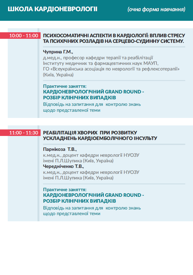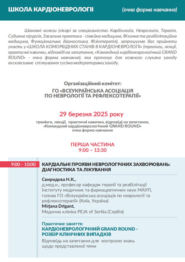 Коморбідні стани в кардіоневрологіі: кардіальні прояви неврологічних захворювань, серцево-судинні захворювання та больові стани, артеріальна гіпертензія та інсульт, вегетативні дисфункції при кардіологічних захворюваннях