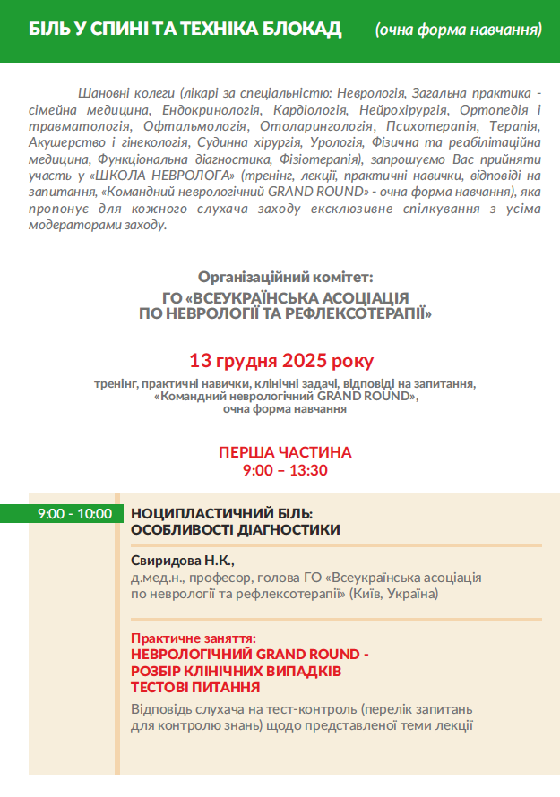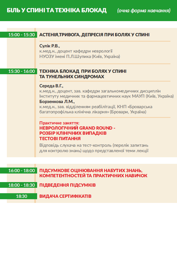 БІЛЬ У СПИНІ ТА ТЕХНІКА БЛОКАД (тренінг з оволодіння практичними навичками)
