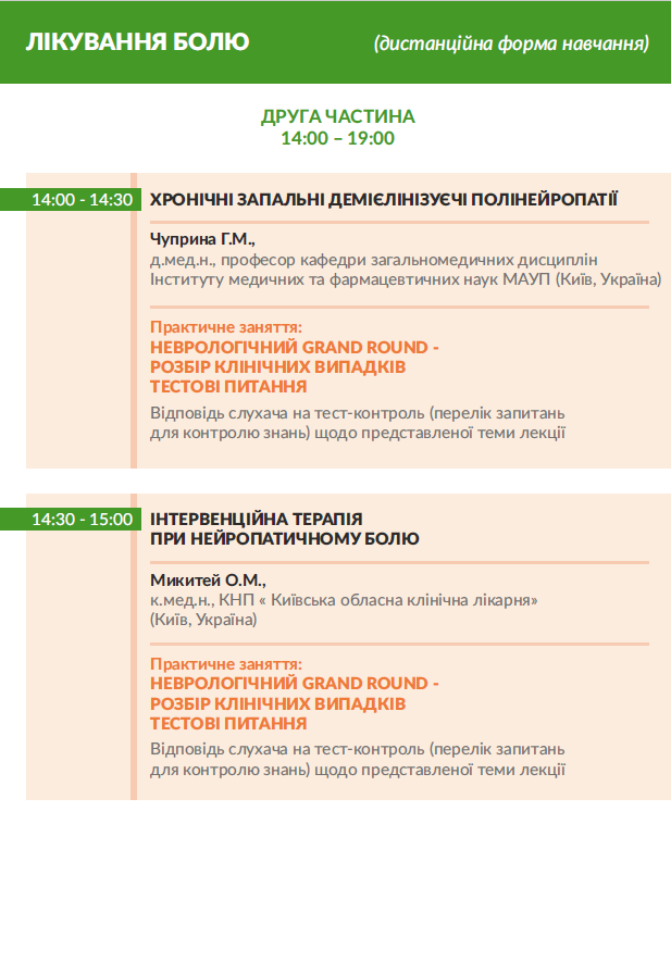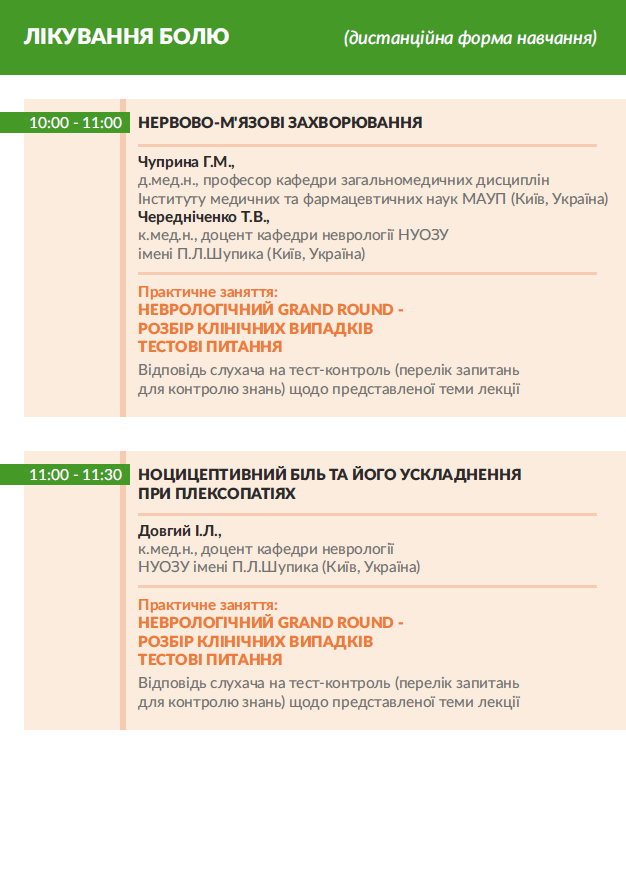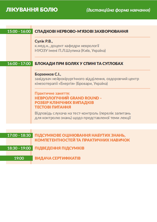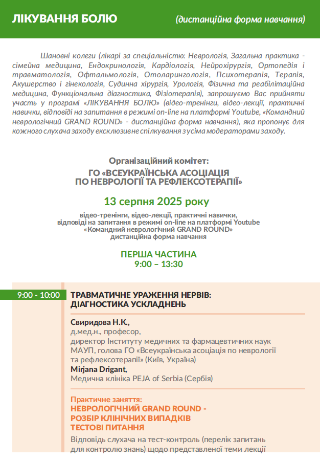захід (дистанційна форма навчання, клінічні розбори коморбідних хворих) для лікарів за спеціальністю: