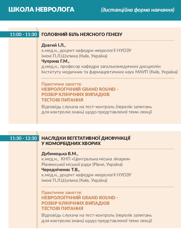 Вегетативна дисфункції, астенія, когнітивні порушення та ускладнення при інсультах; біль у спині гострий та хронічний, посттравматичний головний біль при черепно-мозковій та спінальній травмах; міастенія, пухлини головного мозку та ускладнення при нейроінфекціях
