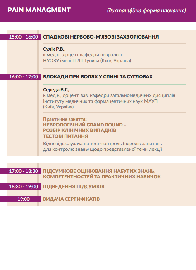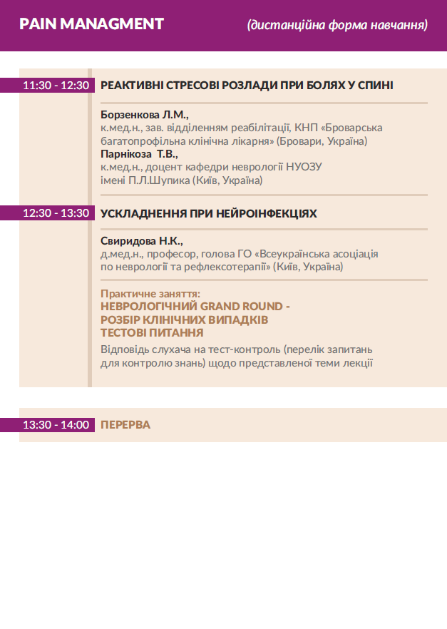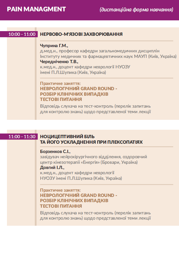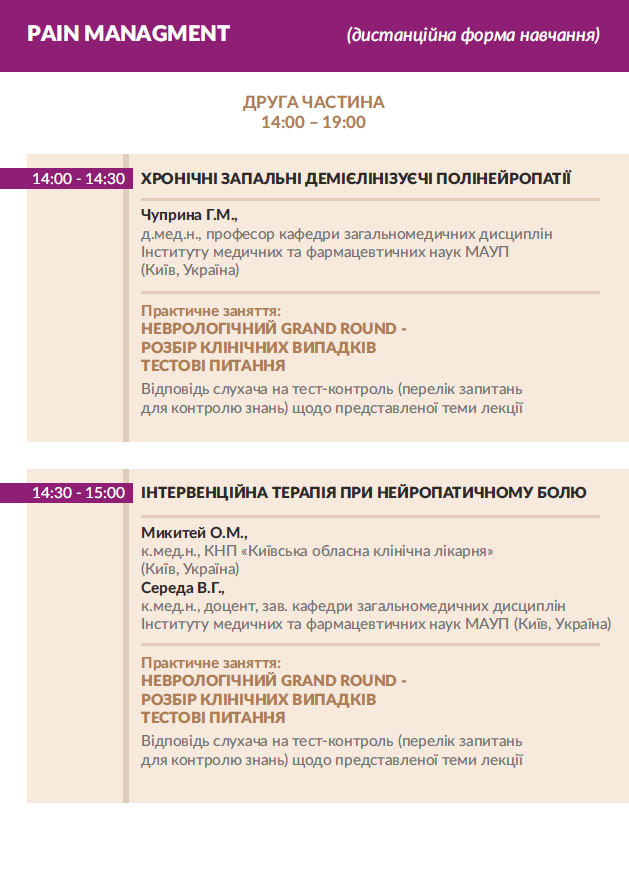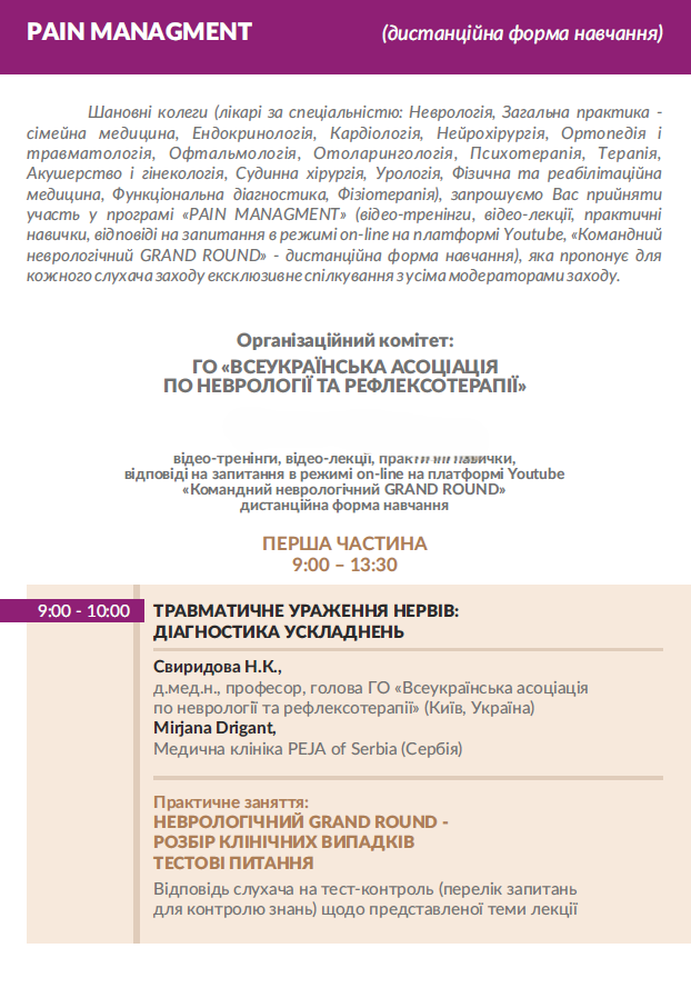 захід (дистанційна форма навчання, клінічні розбори коморбідних хворих) для лікарів за спеціальністю: