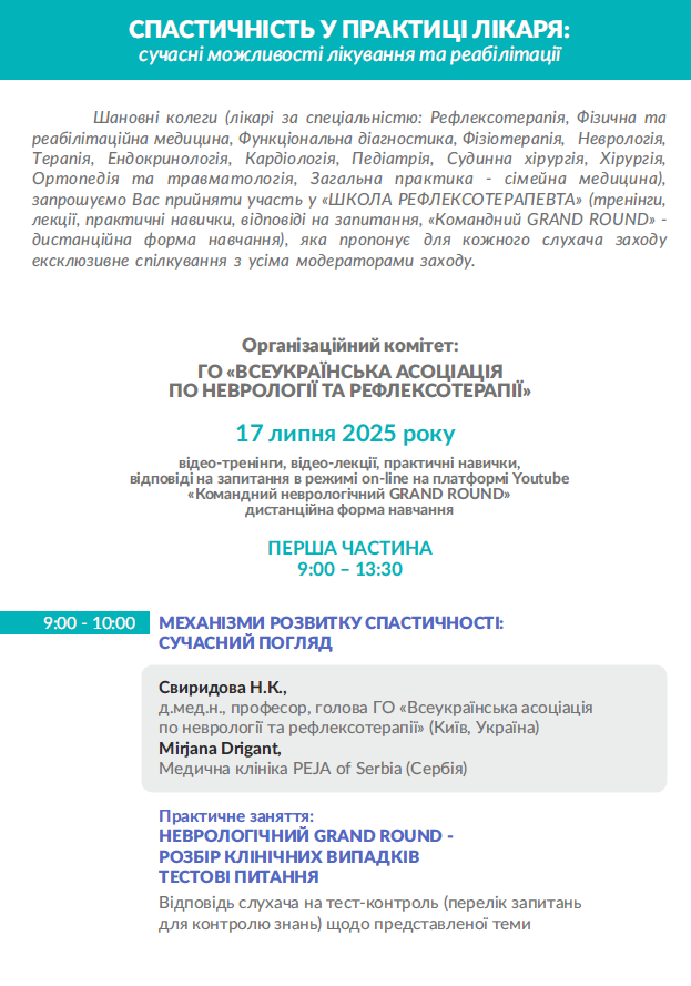 захід (дистанційна форма навчання, клінічні розбори коморбідних хворих)  для лікарів за спеціальністю: