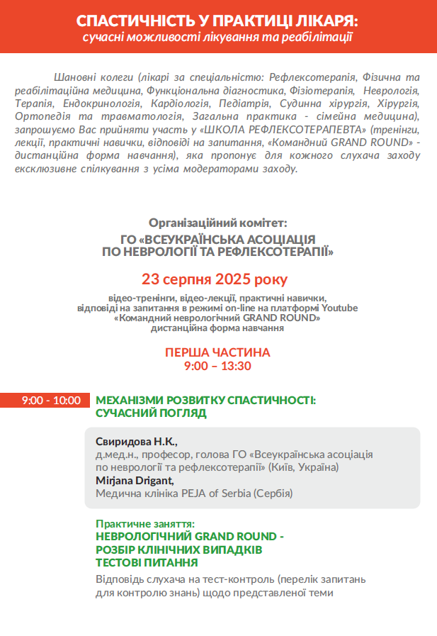 захід (дистанційна форма навчання, клінічні розбори коморбідних хворих) для лікарів за спеціальністю: