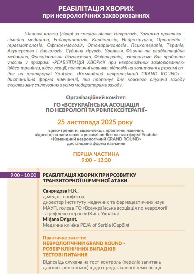 Реабілітація хворих при неврологічних захворюваннях: поєднання неврологічних, кардіальних і психоемоційних розладів