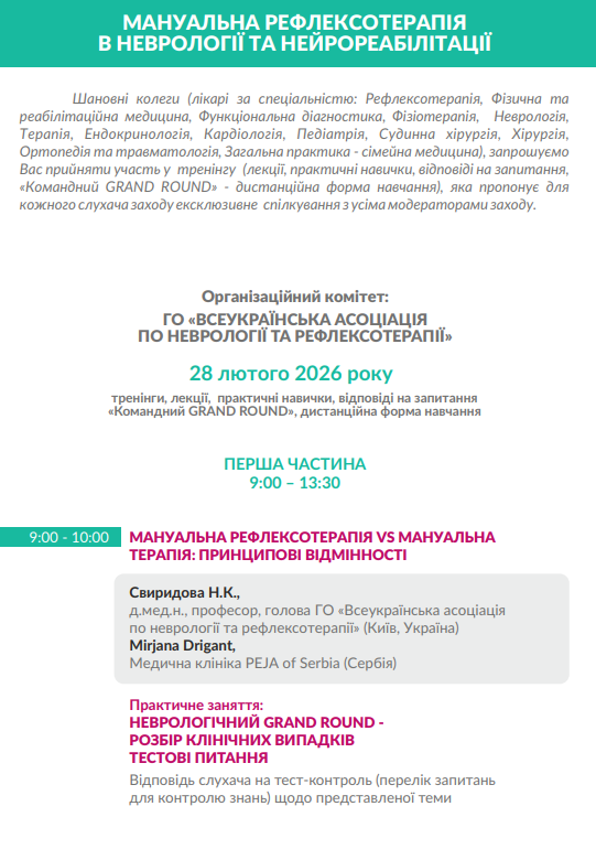 Мануальна рефлексотерапія в неврологіі та нейрореабілітаціі:клінічні алгоритми та практичне застосування
