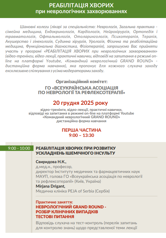 Реабілітація хворих при неврологічних захворюваннях: мультидисциплінарний підхід до коморбідного пацієнта