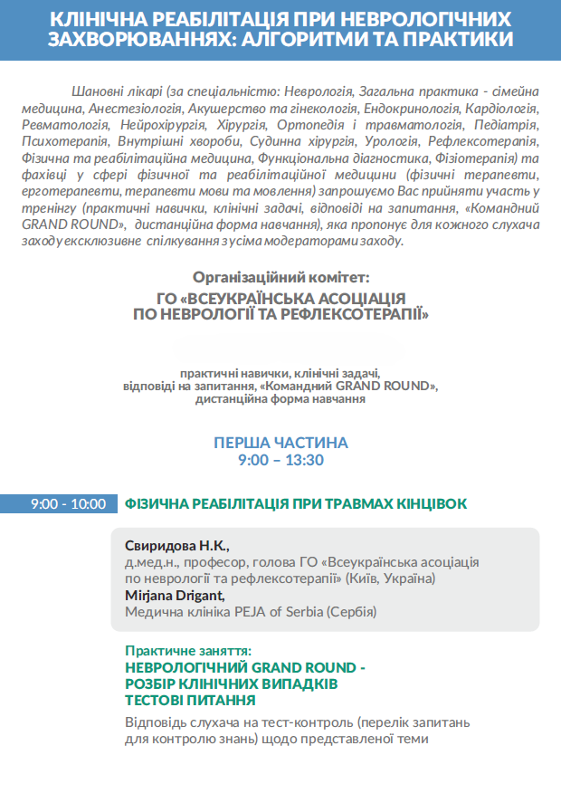 тренінг (дистанційна форма навчання, клінічні розбори коморбідних хворих) за спеціальністю: