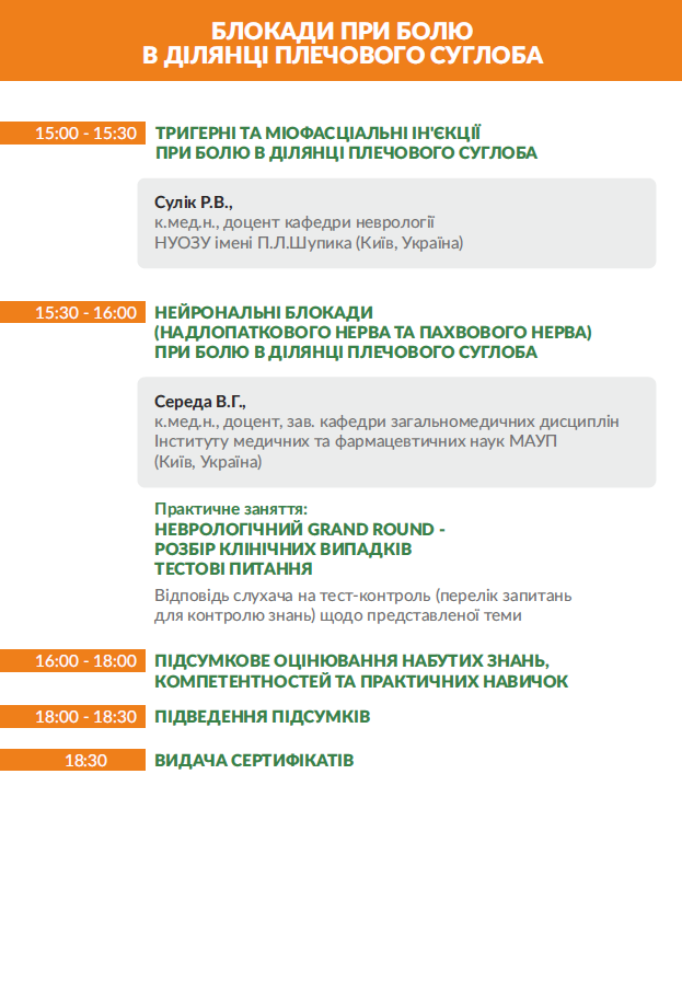 БЛОКАДИ ПРИ БОЛЮ В ДІЛЯНЦІ ПЛЕЧОВОГО СУГЛОБА