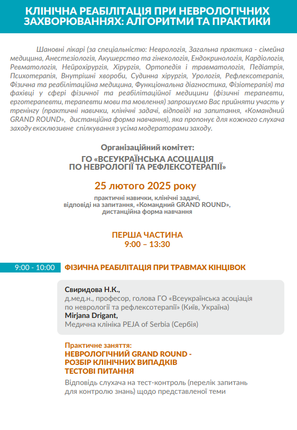 Клінічна реабілітація хворих при неврологічних захворюваннях: алгоритми та практики