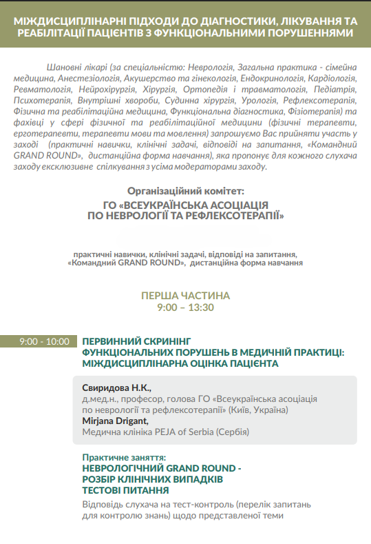 Міждисциплінарний підхід до діагностики, лікування та реабілітаціі хворих з функціональними порушеннями