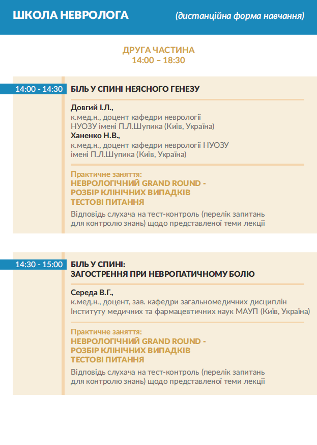 Неврологія, Загальна практика - сімейна медицина, Ортопедія і травматологія, Офтальмологія, Отоларингологія, Нейрохірургія, Судинна хірургія, Терапія, Кардіологія, Урологія, Ендокринологія, Фізична та реабілітаційна медицина, Фізіотерапія